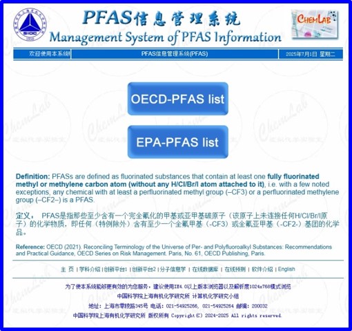 PFAS信息管理系统(CISOC-PFAS)为从事PFAS化合物管理和研究者提供数据支持。该系统具有化合物结构、CAS号和化合物名称检索,使用户可以很方便地通过互联网使用该系统,可以根据化合物结构、CAS号、化合物名称检索,获得对应的PFAS化合物及其相关信息。目前,该系统收录了4000多个化合物。